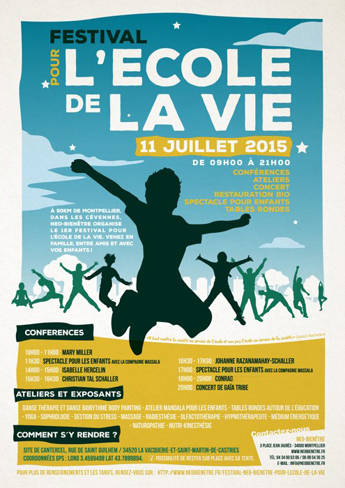 - Festival Neo-bienêtre pour l’école de la vieNotre souhait à travers ce festival est de proposer un panel des divers outils, techniques, activités qui existent autour de l’éducation pour le bien-être de nos enfants. 150 exposants, dont une dizaine d’écoles alternatives sont...