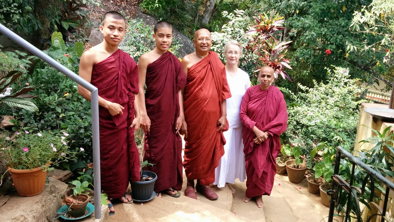 Kema Thero, Ananda Thero, Bhante Kassapa, le fondateur et enseignant au centre, moi et Dhammachari Meniyo, une des deux nonnes.